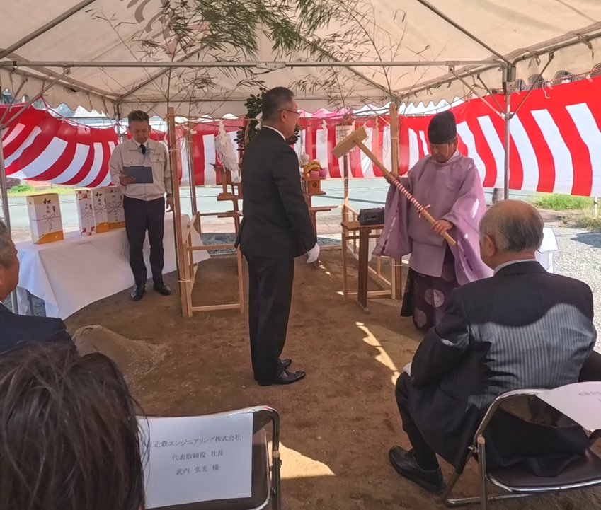 2025年10月7日(大安)、弊社福岡支社の新社屋建設に向けて、大牟田市・新栄町駅近くの移転予定地にて地鎮祭を執り行いました。当日は晴天に恵まれ、関係者が参列する中、社長による鍬入れの儀も滞りなく行われました。新拠点は、現在の大牟田テクノパークから移転する形で、利便性の高い新栄町駅から徒歩約5分の場所に位置しております。2026年4月頃の稼働を予定しており、これを機に社員一同、新たな気持ちで業務に取り組んでまいります。